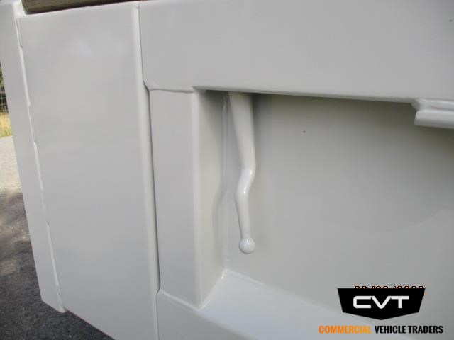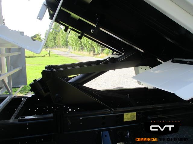Body Style & Size : PTO operated Toolbox Tipper 2.7M long x 2.0M wide with drop sides, hungry boards and swing tail door. Additional sign storage rack, and roller door full width toolbox.