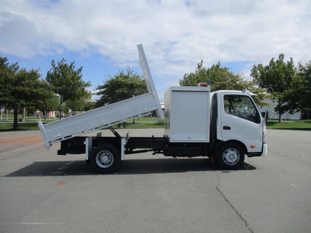 ** Very Tidy Ex Lease Truck travelled only 178,000km, able to be driven on a car licence this Toolbox Tipper has been very well set up, dual LED Beacons, LED Tail lights, work lights, Night light, Day Running lamps and reverse light. Reverse buzzer, Reversing camera, Wheel chocks and holder, Electro Hydraulic hoist with manual deck lock, no PTO to engage. Removable Pipe Rack, 3500kg Brake Tow rating, Toolbox with internal lighting and shelves. Stone Guard, Sun Visor, Grip pattern drive tyres.